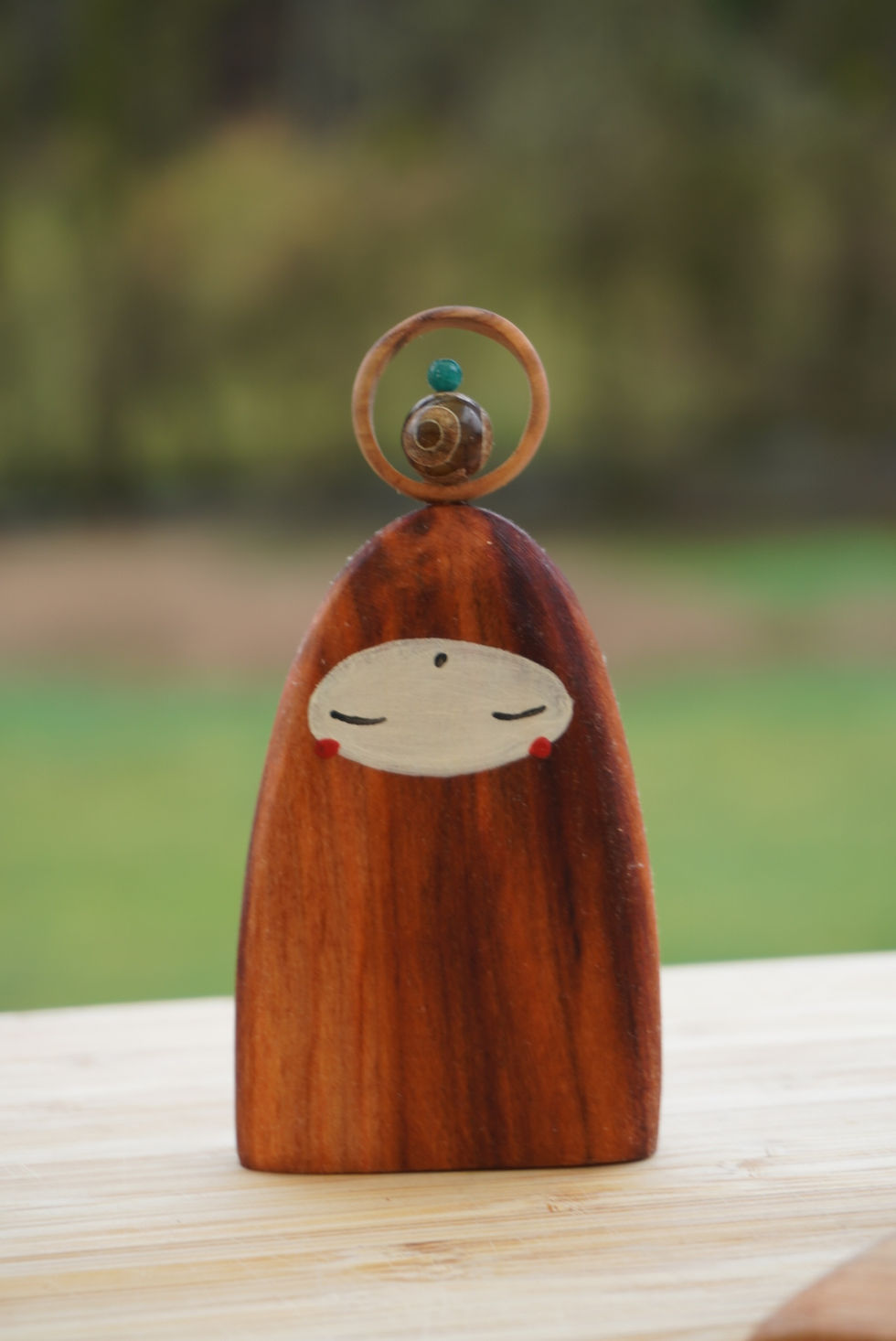 Sculptés à la main dans différents bois, la matière est laissée brut (il est donc normal de voir encore parfois la trace de l'outil).